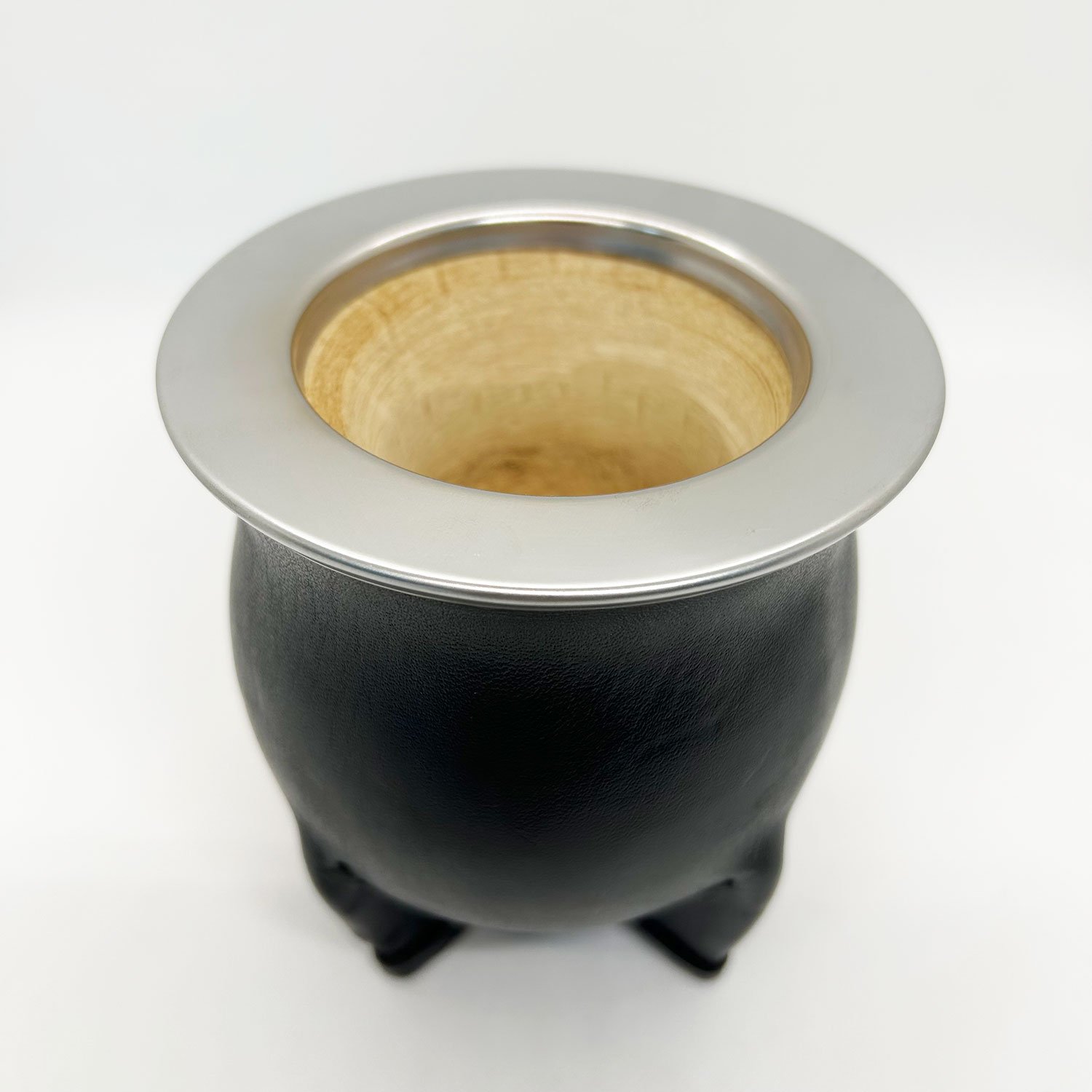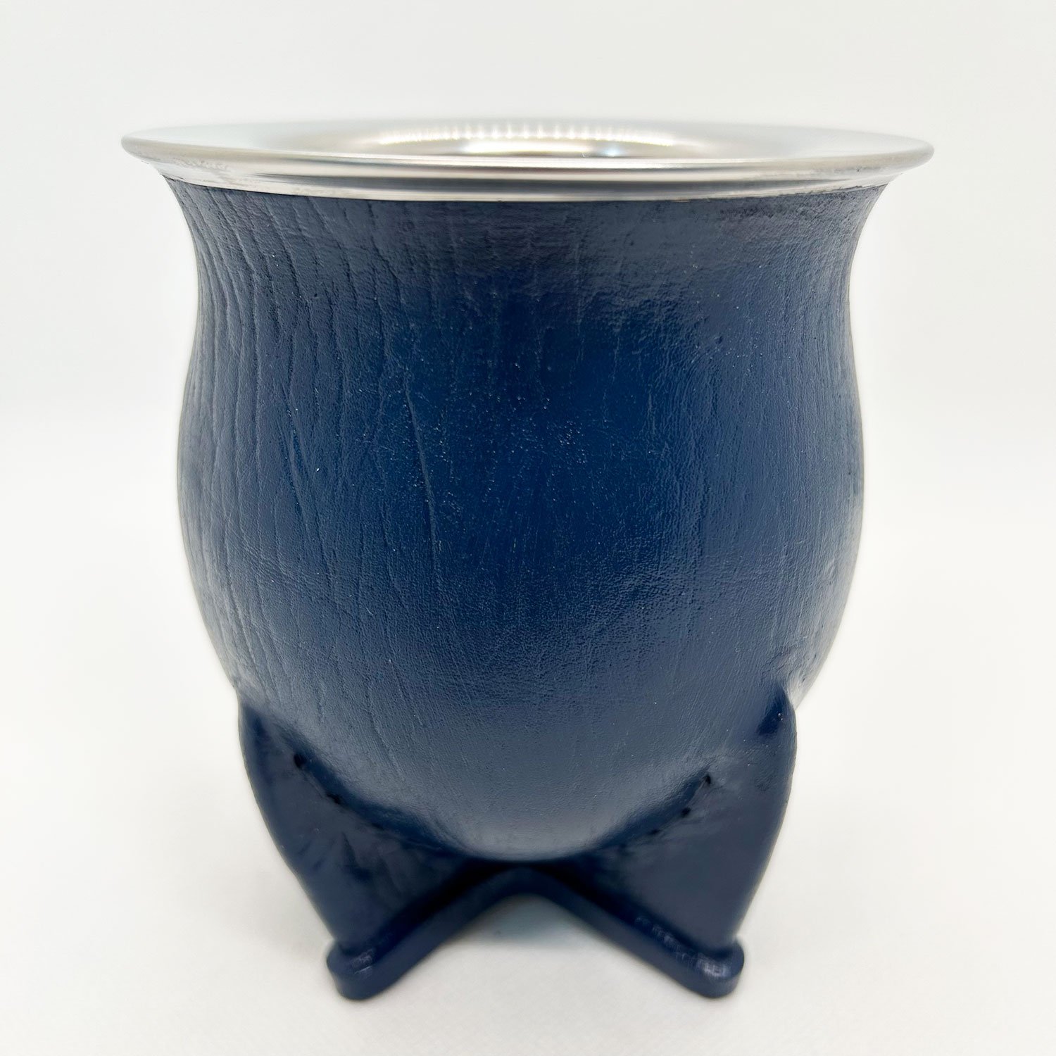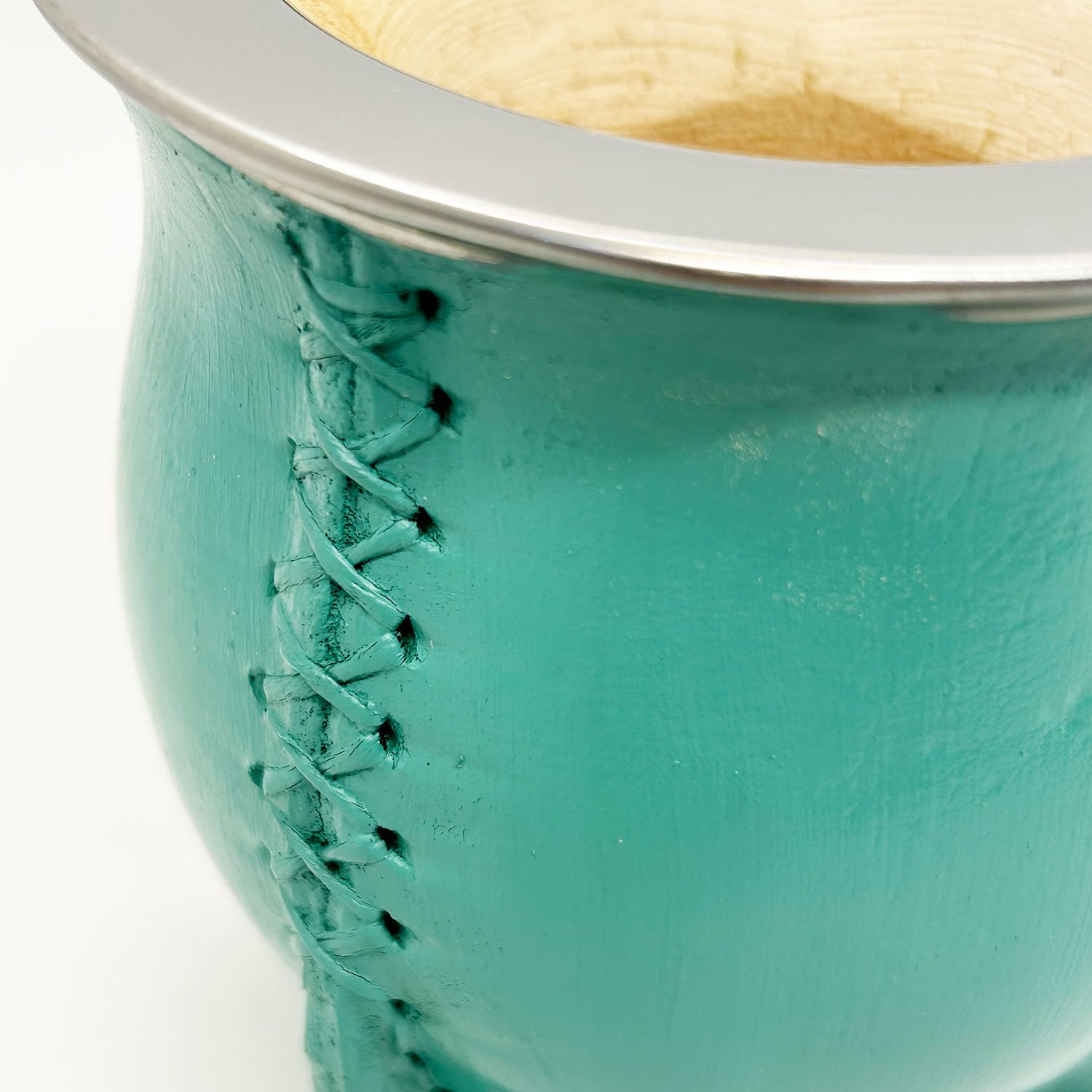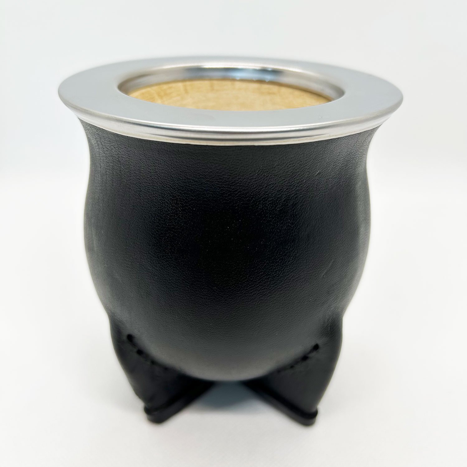 Calabaza gruesa, forrado en cuero legítimo, costura cruzada y virola de acero inoxidable.
