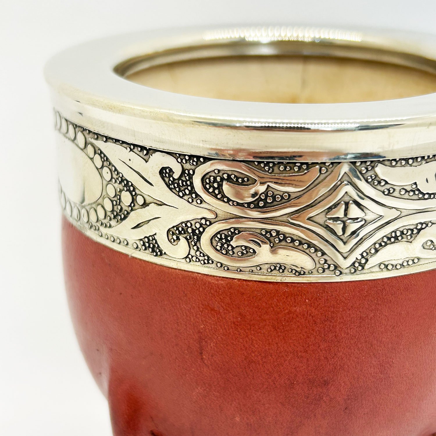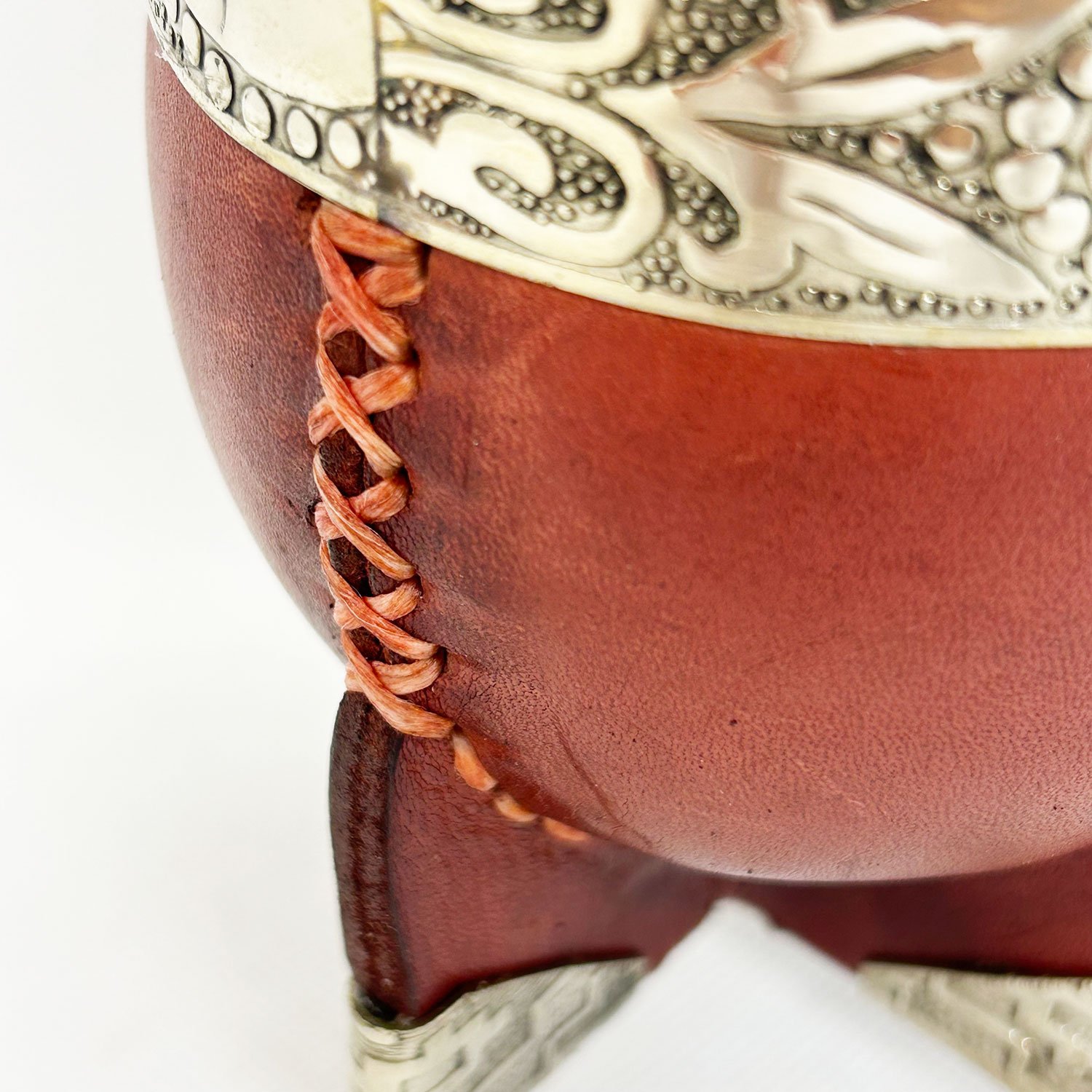 Calabaza gruesa, forrado en cuero legítimo, costura cruzada, virola de alpaca con punteras de alpaca.