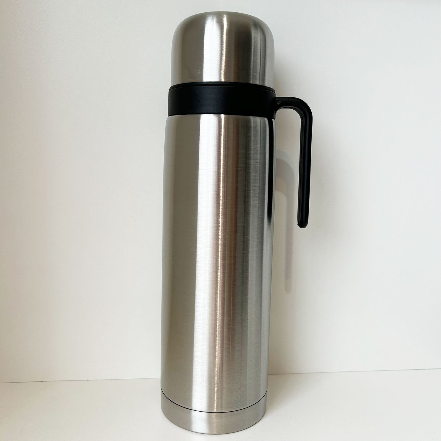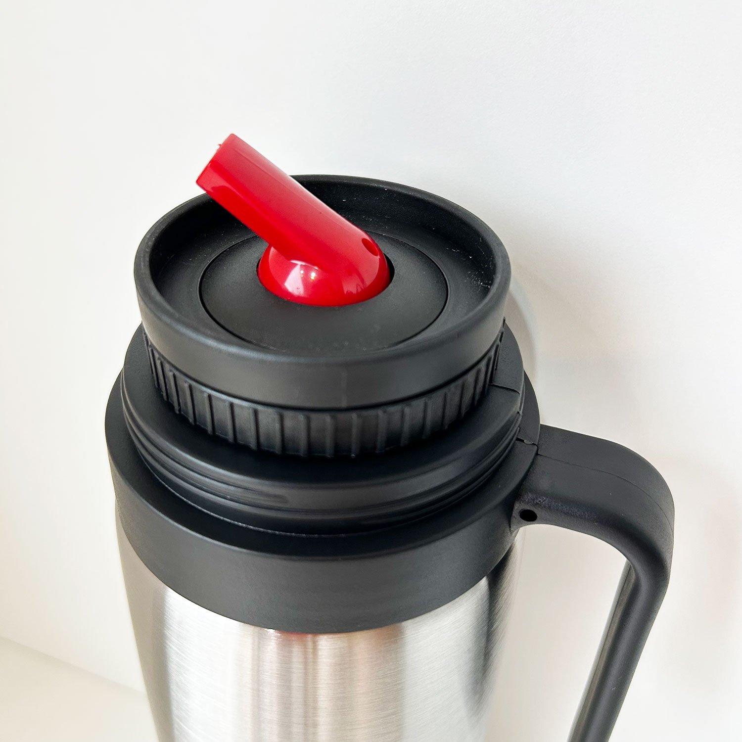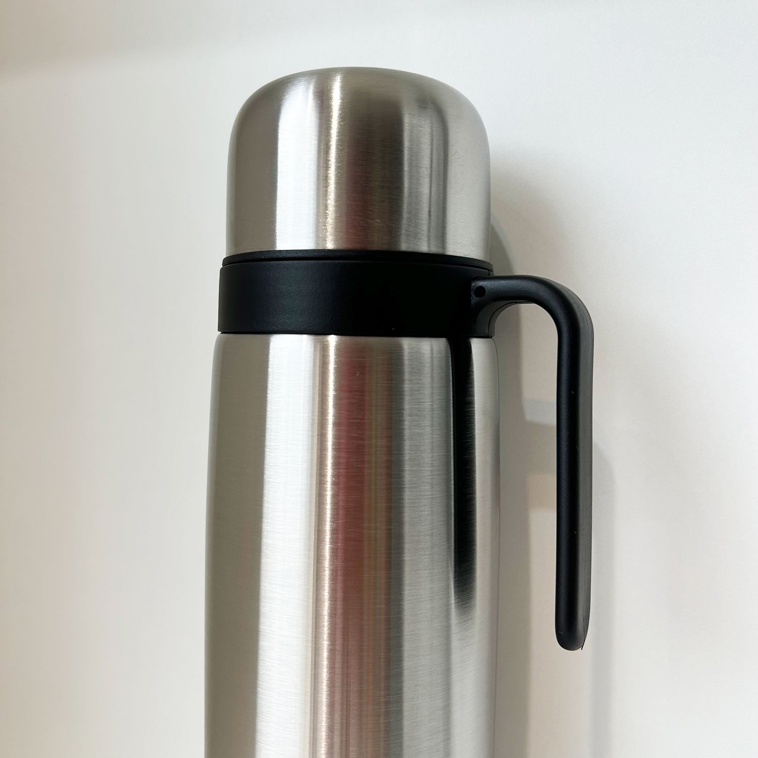 Termo doble capa de acero inoxidable, media manija y pico vertedor matero. Capacidad: 1L